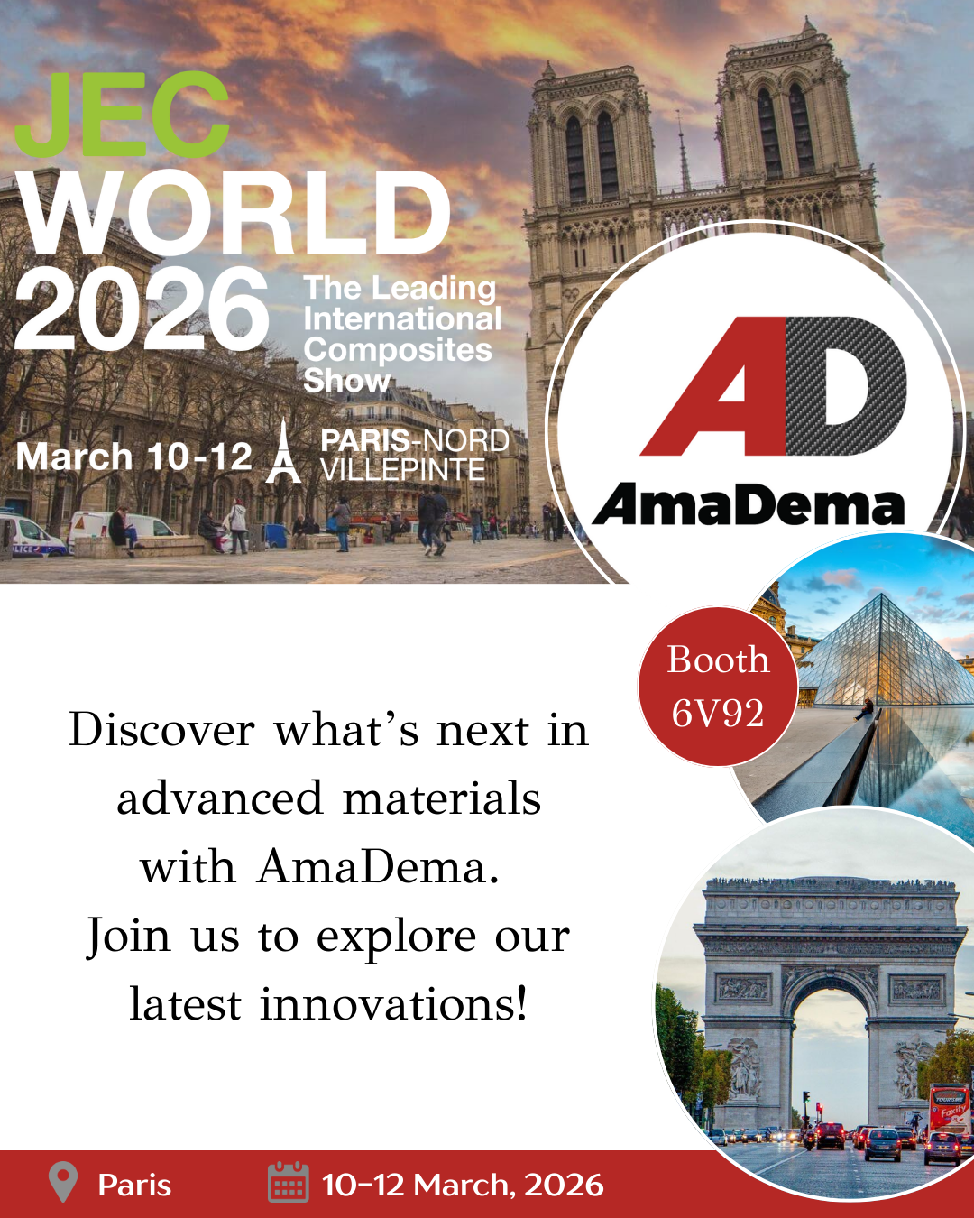 AmaDema will be participating in JEC World 2026, the leading international composites show, taking place in Paris Nord Villepinte from 10-12 March 2026.